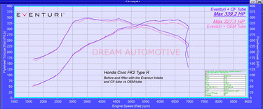 Replacement 100% prepreg carbon fibre intake pipe producing a peak gain of 12hp over the already impressive 18-20hp from the existing Eventuri Intake System