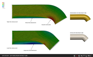 The GR Yaris Eventuri system uses a Patented Carbon fiber Housing which provides an aerodynamically efficient airflow path from the filter to the turbo. Not just another cone filter with a heat shield but a unique design that invokes the Venturi effect and maintains laminar flow conditions to reduce the drag on the turbo.